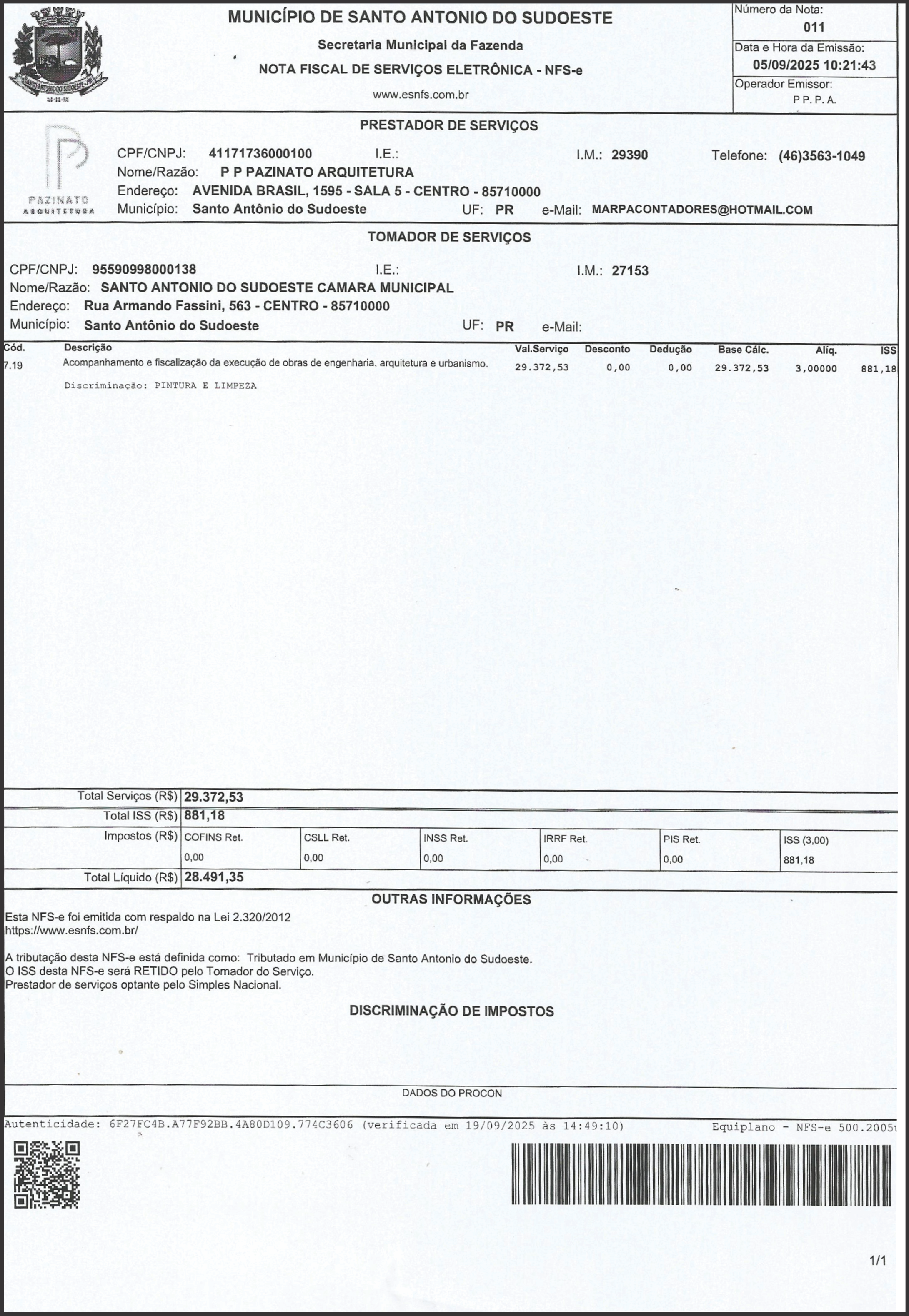 2023 - A Câmara Municipal de Santo Antonio do Sudoeste não realizou nenhuma obra neste período.