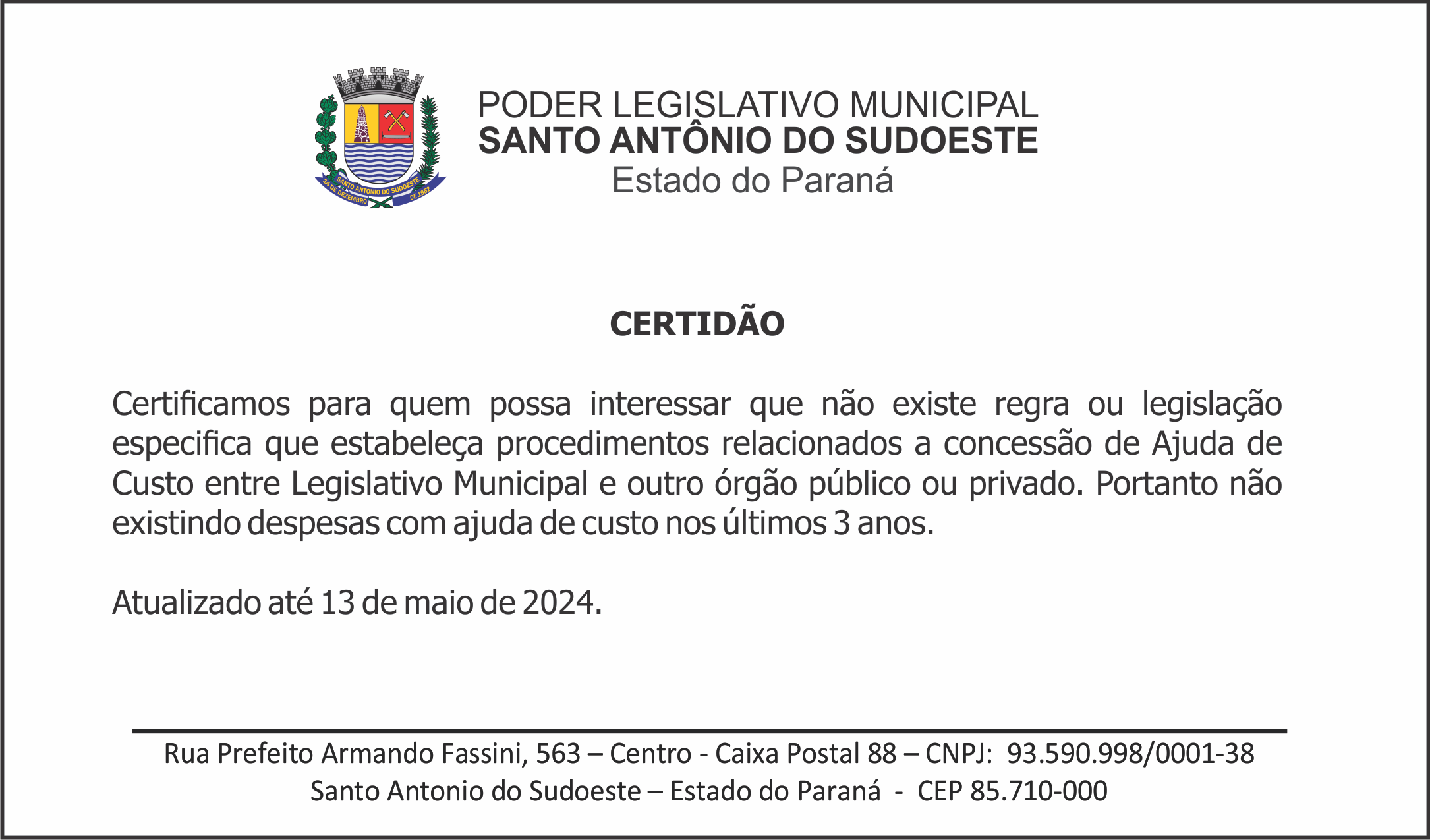 Verbas de Representação - Certidão