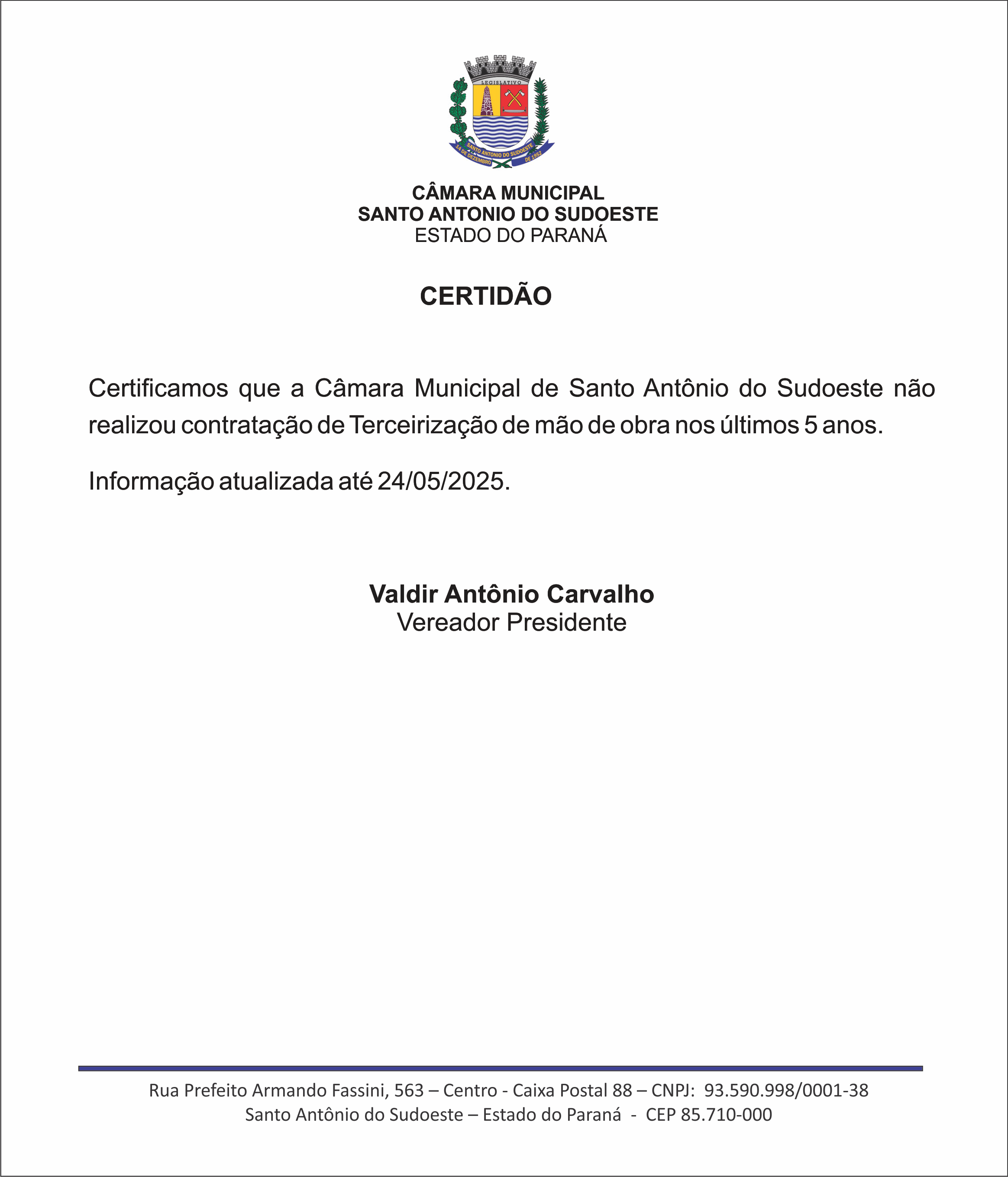 2022 - A Câmara Municipal de Santo Antonio do Sudoeste não realizou nenhuma obra neste período.