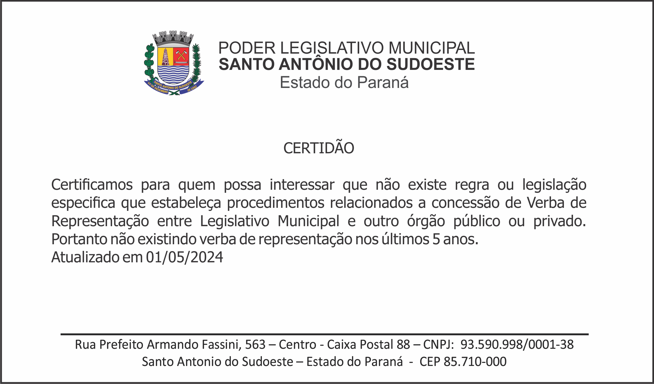 Verbas de Representação - Certidão